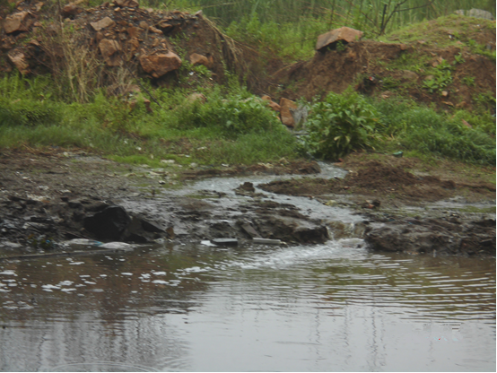 1號橋處污水口水量較小,主要為上游養(yǎng)豬場、居民生活污水、苗木山地雨水自然匯水。