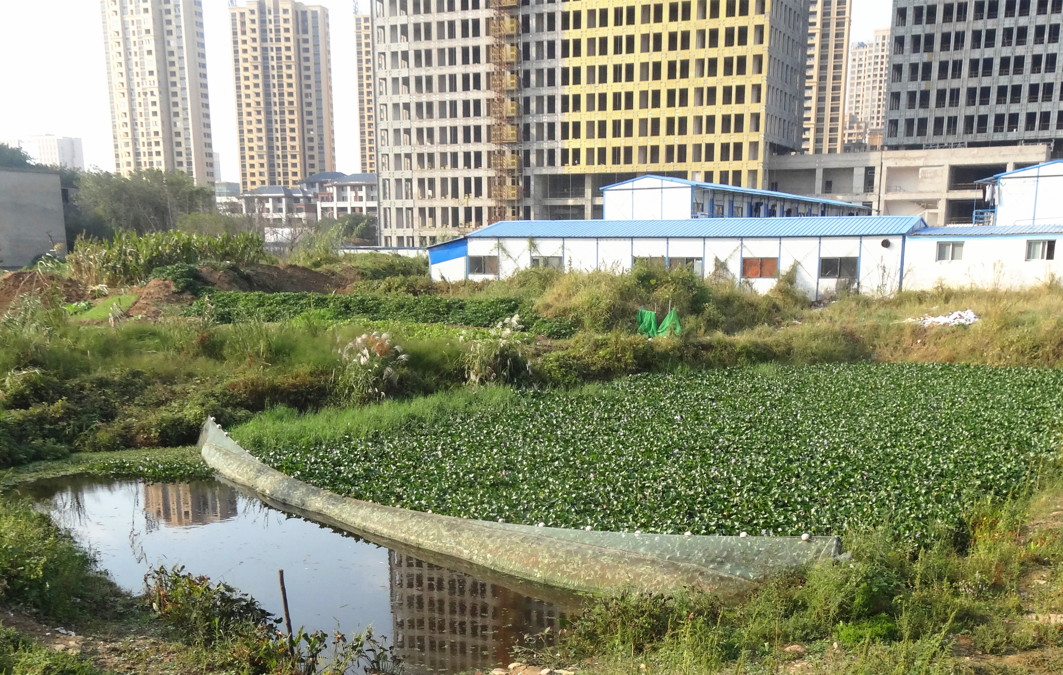 湖區(qū)北側(cè)補(bǔ)水口為湖區(qū)主要污染源,污水主要由上游魚塘水、周圍建筑工地生活污水、路面、山坡、土坡等自然雨水匯集。水中含有較多的油污、水色黑灰、水體渾濁、水質(zhì)為劣五類。