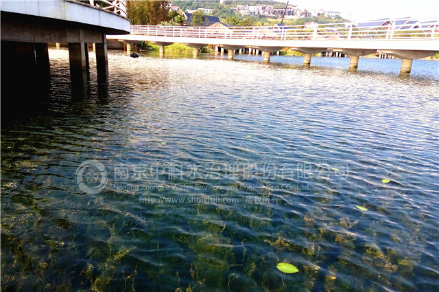 南北水塘水生態(tài)修復示范項目由南京中科水治理股份有限公司進行設計施工一體化工程,工程總面積22.8萬㎡,平均水深2.2m。南北水塘在修復前為典型的富營養(yǎng)化水體,清水型生態(tài)系統(tǒng)構(gòu)建技術工程施工后,主要水質(zhì)將達到地表水環(huán)境治理標準GB3838-2002 Ⅳ類以上,透明度達到1.5m及以上,且每年不少于300日。
