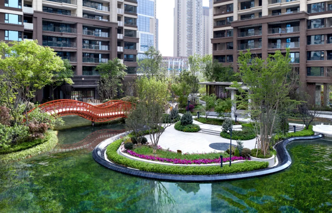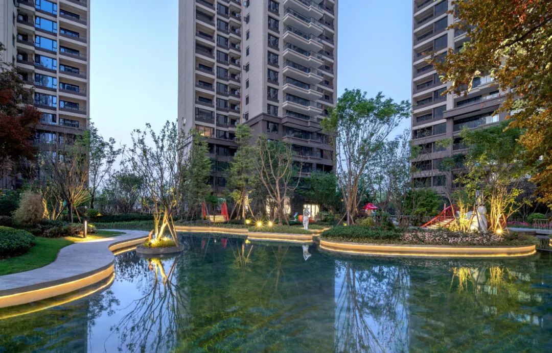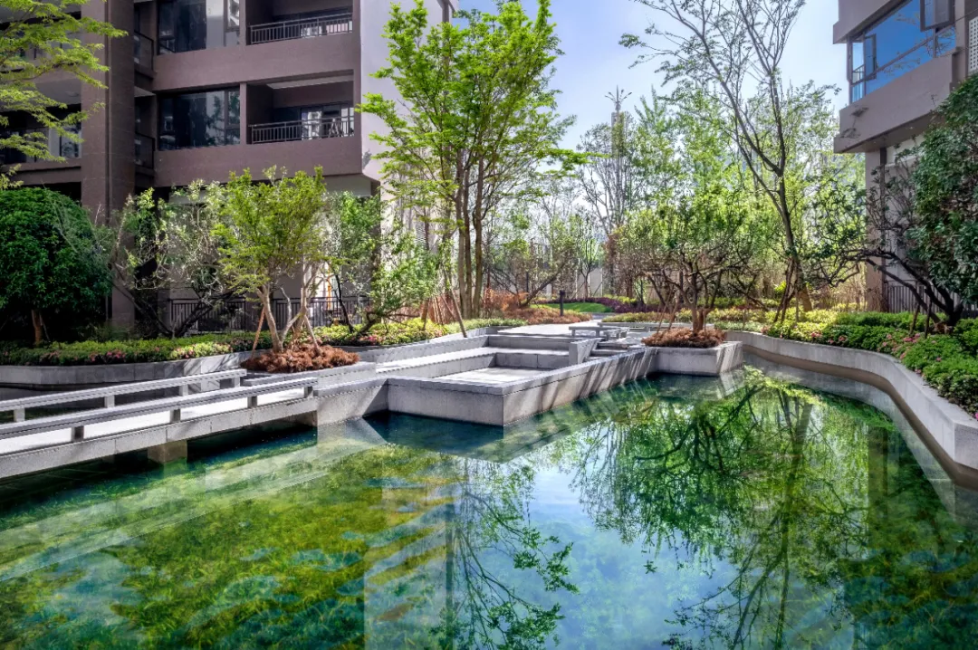 一池水,一片海,它是我們心中美好的水岸島居生活的一個真實夢境。設計師以現(xiàn)代的手法構圖溪岸,融合泛會所、溪流、湖心島等原生態(tài)水岸景觀,再現(xiàn)“岸梅溪春又生”的自然時尚居所,給人以森林般的水岸島居體驗,展現(xiàn)島居住宅和諧精緻之美。